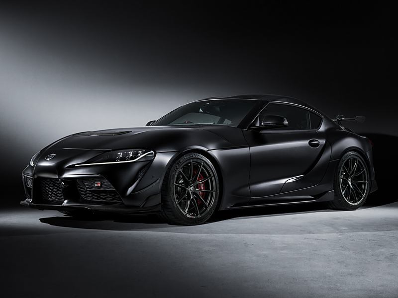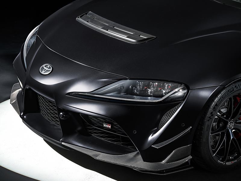 先看外观有什么变化,GR supra A90 Final Edition在车头部分增加了碳纤维前唇、碳纤维风刀以及发动机舱盖上的碳纤维通风开口,并针对车尾增加了同款碳纤维鹅颈后扰流板,另外该车还配备天蝎钛合金排气以及KW悬架系统等。轮胎搭载米其林PILOT SPORT CUP 2系列轮胎(前轮265/35 Z1R19,后轮285/30 ZR20),提升抓地力。