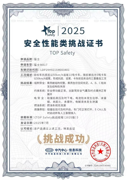 安全方面,猛士M817构建“全维安全”体系。首发的“战甲车身”,1920mm内高压一体成型纵梁、20个环超高强度笼式车身+四纵十横下车体设计,高强度钢占比83.2%。全维防碰撞系统CAS 4.0具备130km/h的AEB最高刹停能力,支持异形障碍物自动刹停、增强型自动紧急转向等功能;宁德时代越野专用电池配备10层防护,通过中汽中心nesta六维电安全认证 。