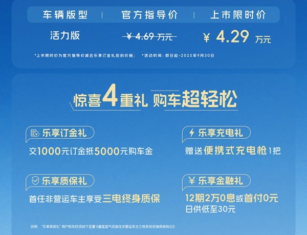 9月13日,睿蓝蓝气球上市,售价4.69万,限时价4.29万。新车定位微型车。