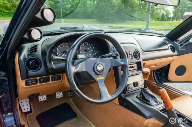 内饰部分保留原厂棕色内饰,仅是在A柱增加了外挂仪表和更换MOMO方向盘。