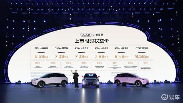 2026款吉利星愿全系标配宁德时代电芯、后置后驱、后多连杆独立悬架、70L超大前备箱和Flyme Auto车机系统,外观新增“香颂紫”与“可可米”两款车色,还推出了全新的410km自在版,让消费者有了更多的选择。