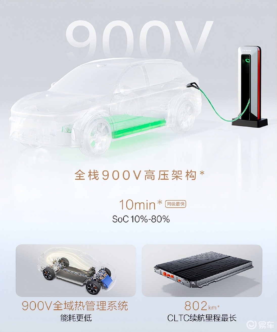 在续航充电方面,全系标配900V高压平台+麒麟电池,续航高达802km,充电10分钟续航增加570km,直接把“充电焦虑”打进冷宫。