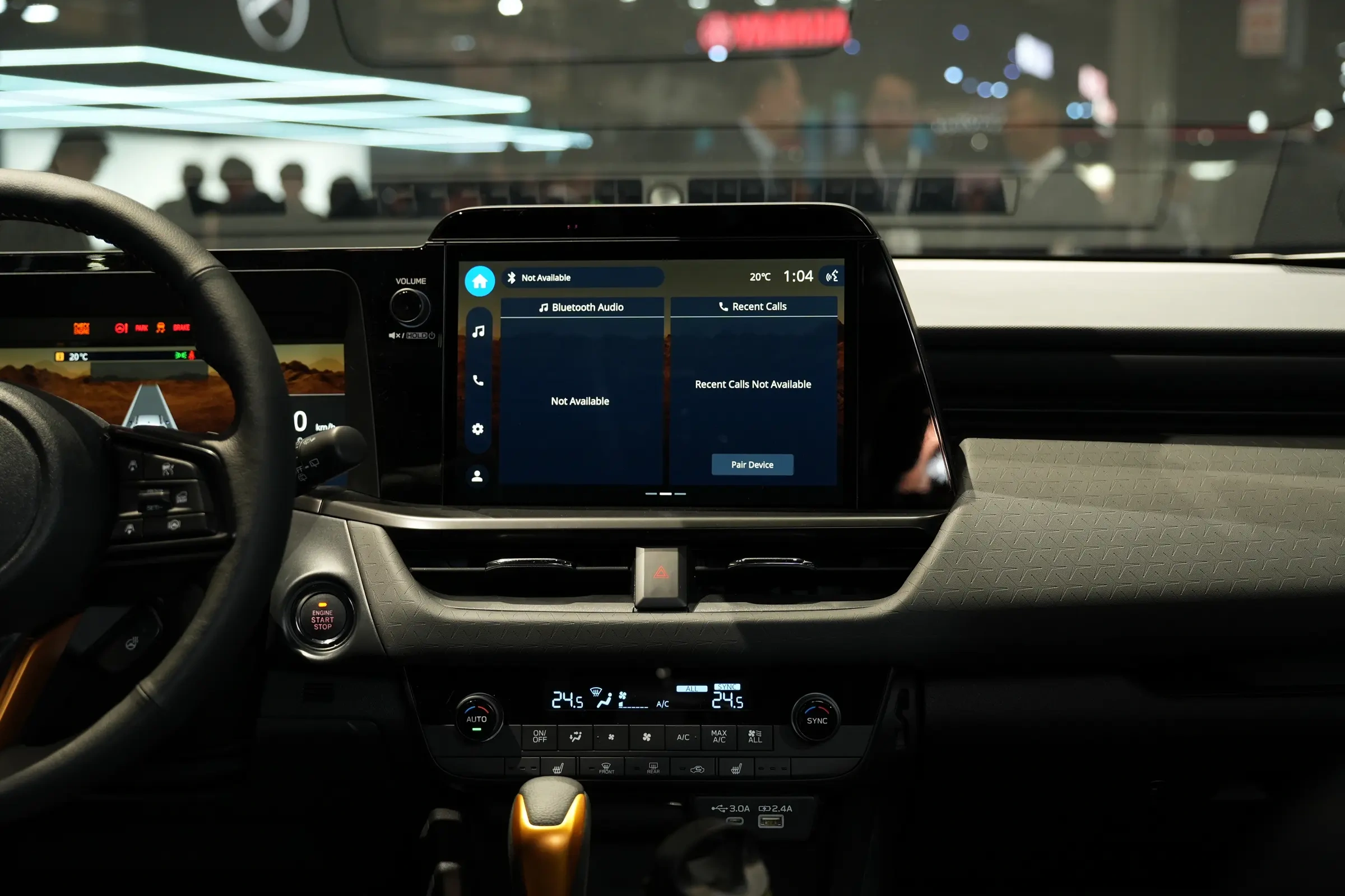 内饰方面,全新斯巴鲁傲虎配备12.1英寸悬浮式屏幕和12.3英寸液晶仪表屏,两块屏幕呈不规则连屏设计,屏幕中间加入旋钮,中控屏下方设有大量物理按键,方便驾驶员盲视野操作,三辐式方向盘增加了金色缝线和金色的装饰件,实体挡把也有金色元素的点缀,这些都是荒野版车型的专属标识。