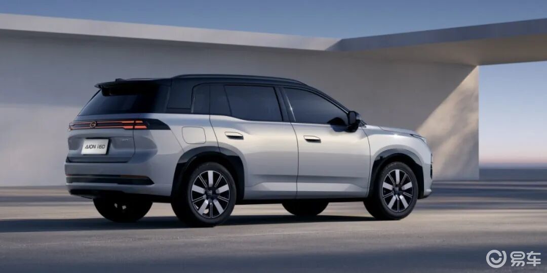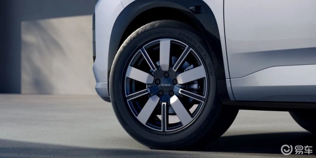来到车身侧面,仔细看,新车的整体线条与AION V基本保持一致,车身尺寸方面,新车的长宽高分别为4685/1854/1660mm,轴距为2775mm,新车整体尺寸比AION V大。后视镜拥有辅助驾驶小蓝灯,提供18英寸与19英寸的轮圈可选。