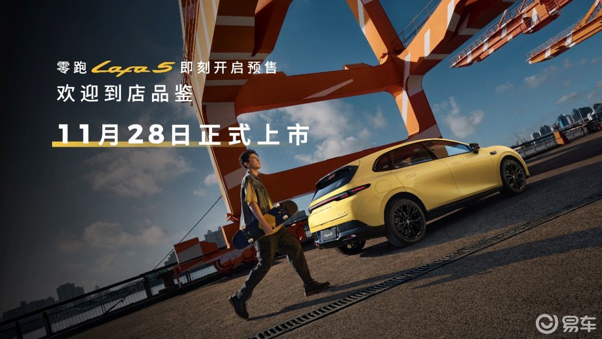 在外观设计层面,Lafa5外观延续零跑家族设计并强化运动感。前脸为封闭式中网+贯穿式灯组,三分式前包围配主动格栅,集成激光雷达保障智驾。侧面用无框车门,B柱、后视镜等黑化处理;车身尺寸4430/1880/1520mm,轴距2735mm,优化内部空间。提供电掣黄、风驰灰等6种车色,含2款专属色。车尾贯穿式尾灯+大尺寸扰流板,与前脸呼应,强化运动风格。