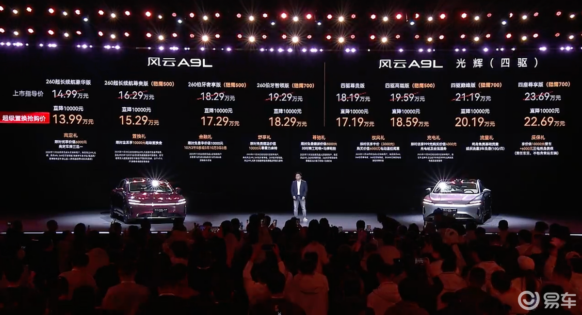 至此,风云A9L全系指导价:14.99万元-23.69万元,全系置换抢购价13.99万元-22.69万元。