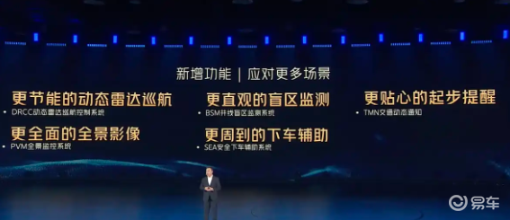辅助驾驶方面,新车将搭载24个高精度感知硬件,支持DRCC动态雷达巡航控制系统、BSM并线盲区监测系统、TMN交通动态通知、SEA安全下车辅助系统、PVM全景监控系统。