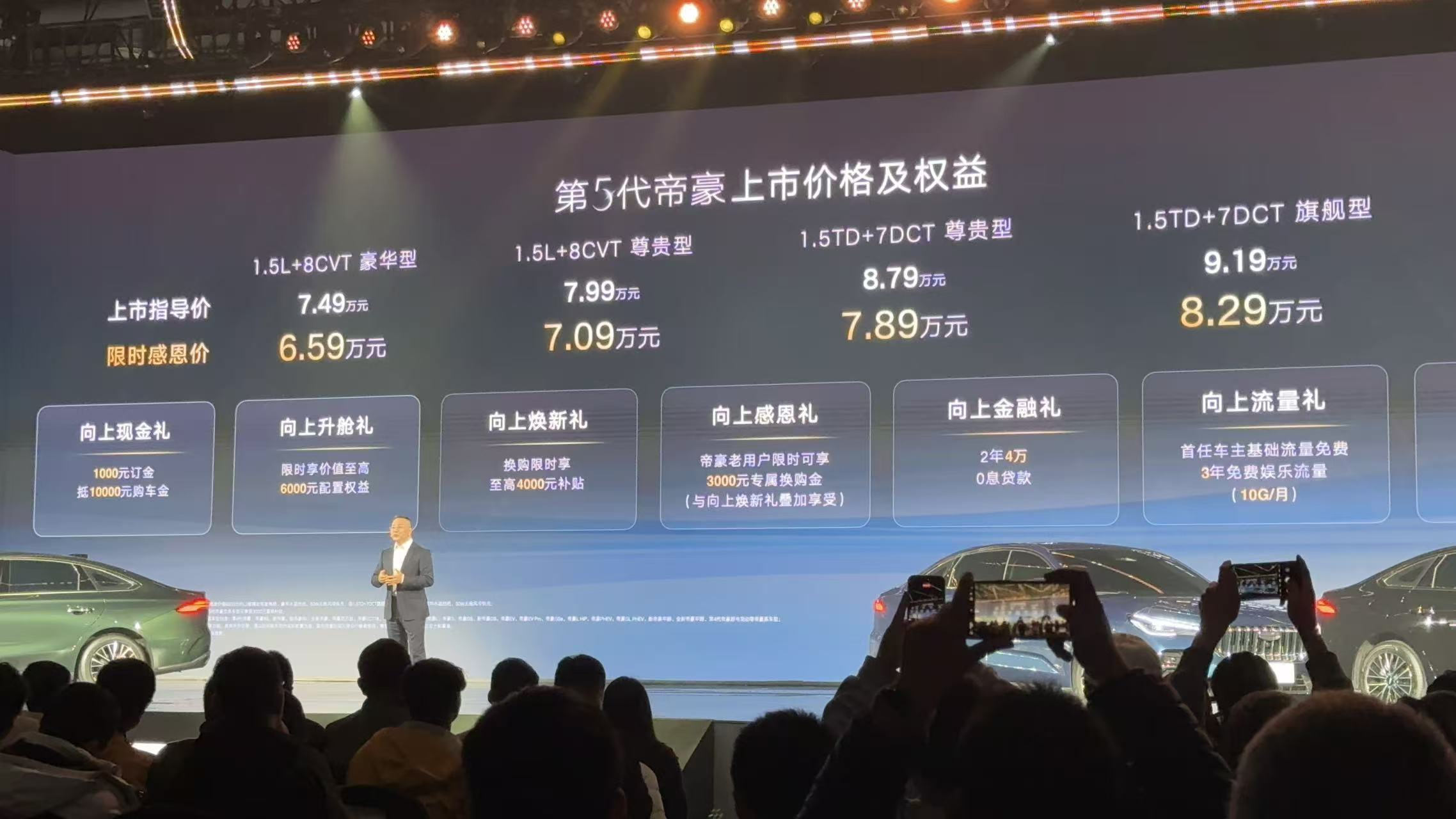 通过与上代车型相比,全新第5代帝豪的变化可谓是翻天覆地。同竞争对手相比,那也是独树一帜的存在。为了让一台10万以内的家用轿车看起来更有份量更精致,全新第5代帝豪整车尺寸为4815*1885*1480mm,轴距高达2755mm,比上代车型大了一圈。也正是因为体型的壮硕,再加上车头中网、保险杠下沿,以及门把手等多处镀铬点缀,新车整体的质感和氛围上升了不止一档。