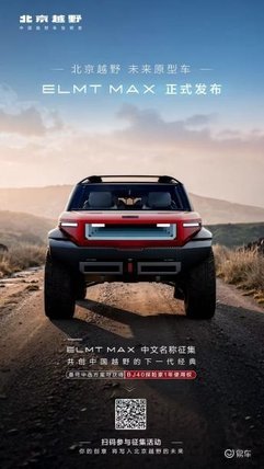 北京越野的愿景要和用户一起携手创造。即刻起至2026年3月20日,所有人均可参与ELMT Max未来原型车中文名称共创活动,最终中选方案可获得BJ40探险家一年使用权。