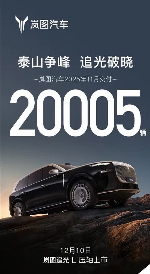 岚图汽车11月交付首次突破2万辆,创历史新高。