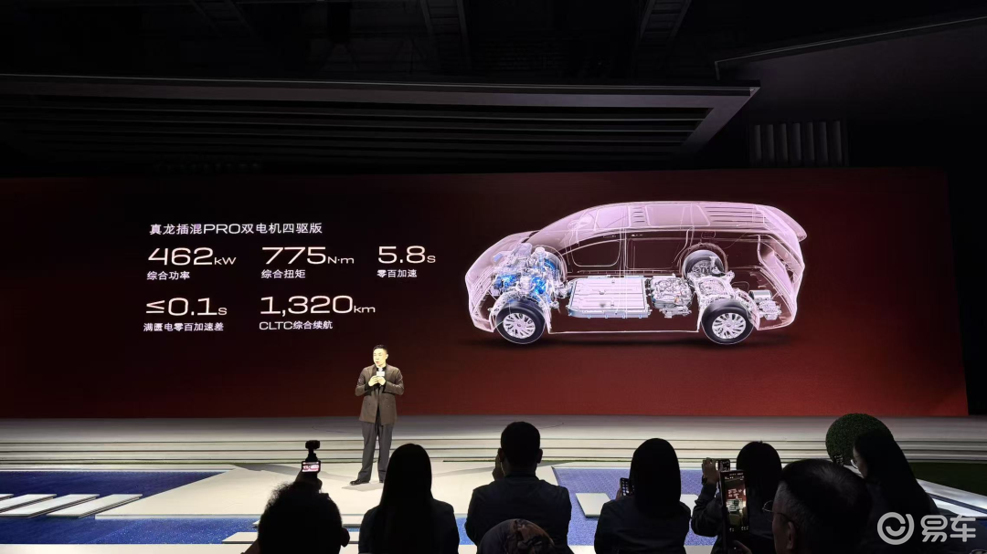 两款车都搭载真龙插混Pro系统,标配前后双电机四驱,综合功率462kW,综合扭矩775N·m,看齐v8发动机。