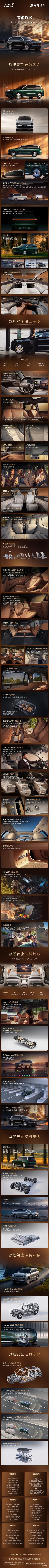 零跑D19的内饰首次于公众见面,在保持零跑品牌风格的同时,配置用料更加豪华,包括17.3英寸中控屏、21.4英寸吸顶屏、二排零重力座椅、半苯胺头层牛皮座椅、天鹅绒顶棚、1600万色氛围灯、森野氧舱、冷暖箱、二三排遮阳帘、23扬声器音响等等。值得一提的是,零跑D19将提供双座椅布局可选,包括2+2+2的六座以及2+3+2的七座。