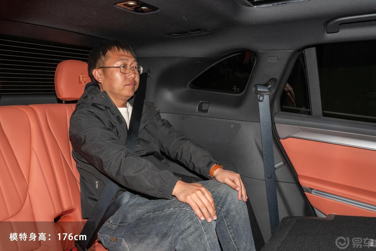 乘坐体验上,大家可以看看示例图,身高176cm的乘客在第三排还有一拳多的腿部空间,所以,二胎家庭、或者经常需要带上父母一起出行的,唐L的7座是实实在在的功能,不是摆设。