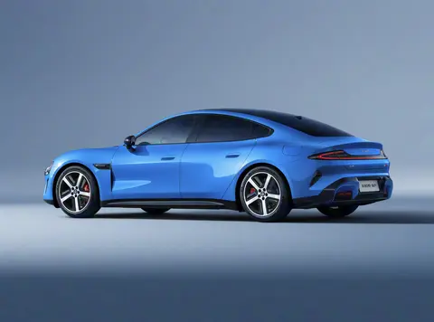 全新小米SU7的车身轮廓基本不变,只不过升级了全新的卡布里蓝的车漆,同时换装了全新样式的20英寸亮银色铝合金锋刃轮圈,胎宽从之前的前后245mm,升级成了前245mm/后265mm,全系升级了大尺寸四活塞固定刹车卡钳,Max版更配备了红色Brembo卡钳、打孔制动盘与低金属制动片。弧线形的车顶搭配着黑色车窗装饰边框,黑色加宽的B柱设计,以及全车黑色隐私玻璃,再配上黑色宽体侧裙,隐藏式门把手和四个无边框车门,也增添了更多的运动属性。盔甲笼式钢铝混合车身和“内嵌式防滚架”也从2000Mpa提升至2200Mpa,电池安全升级,也加入了1500Mpa防刮底横梁加底部“防弹涂层”,被动式安全系统也有了明显提升。标配了9安全气囊,新增了2个后排侧气囊。并且全系新增门锁专用后备电源。