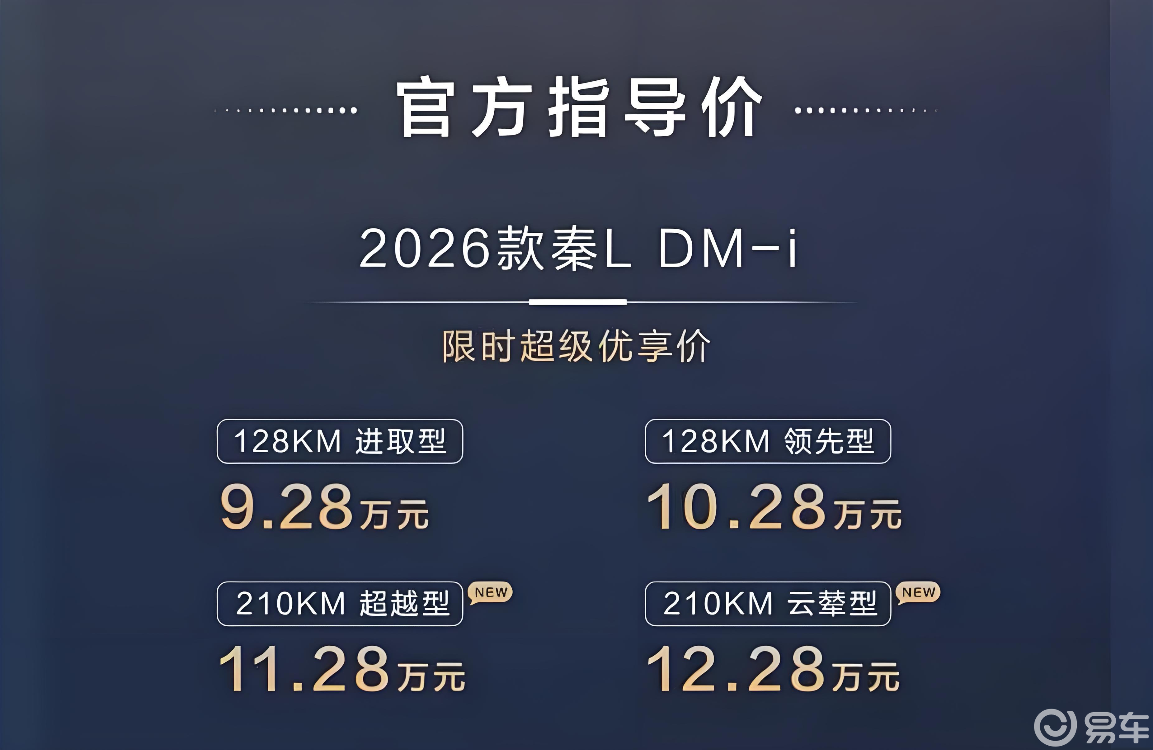 可以随着2026款秦L DM-i的上市,却打破了我的固有认知,新车限时售价9.28-12.28万元,关键是210KM云辇型免费赠送TBC高速爆胎稳行系统!要知道这是“百万级”车型上才会搭载的技术,现在却下放到了10万级车型上,比亚迪这一炮,让对手猝不及防!也给“后来者”打了个样儿。