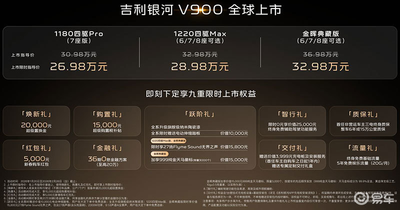 所以回看银河V900这26.98万起的定价就很有意思了,它不是在现有MPV的配置表上做加减法,而是试图用一套新的技术方案,同时攻克空间、驾控、安全和智能这几个家庭MPV的核心痛点。新车把空气悬挂、四驱、大电池和一系列主动安全技术变成了标配,然后定了一个接近传统合资品牌中型MPV的价格。这显然是一种进攻姿态。