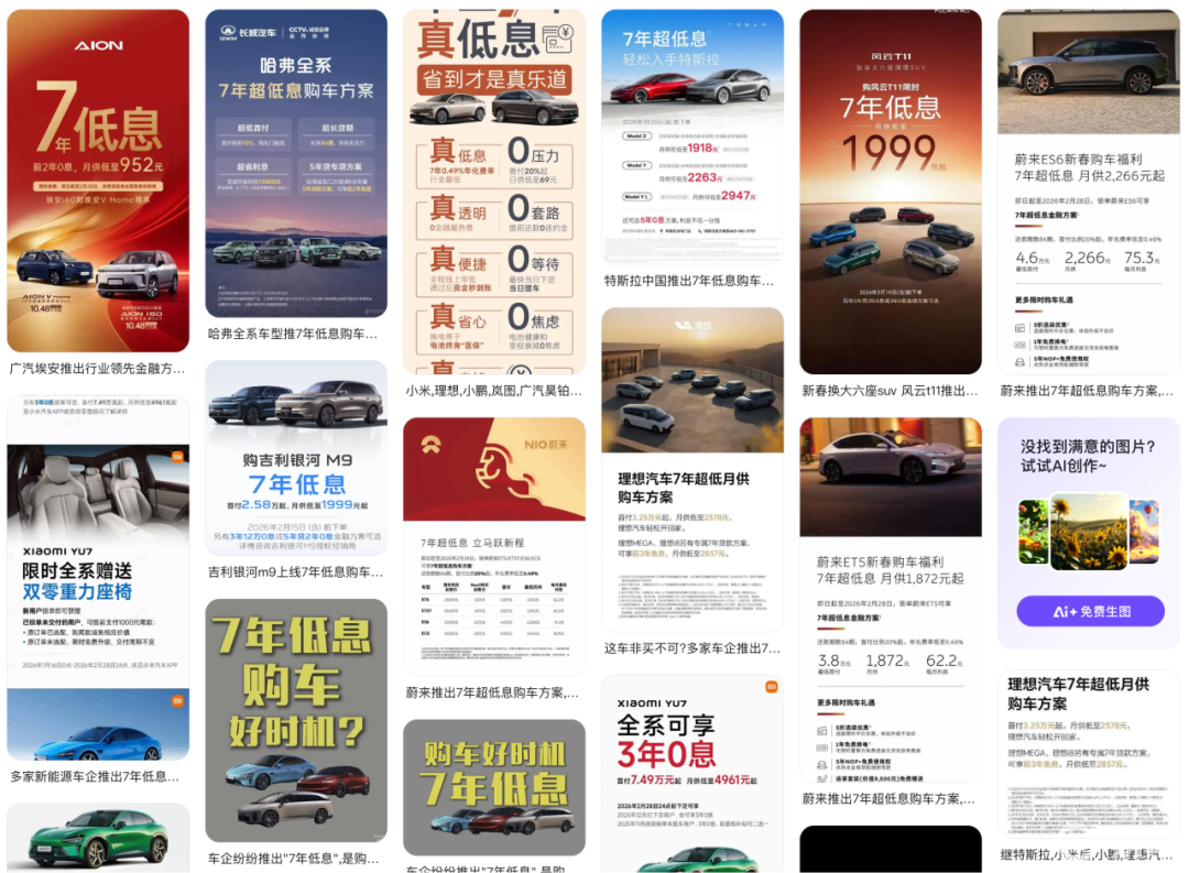 图/多家车企开启7年低息购车方案
