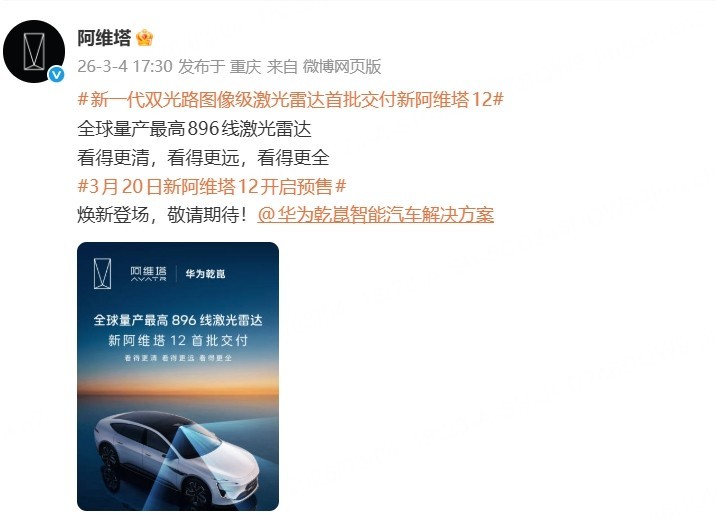 除了主雷达的全面升级,新款阿维塔12还配备了由前向三颗和后向两颗组成的分布式毫米波雷达架构 。这种多角度感知设计能获取三倍的信息量,大幅提升了系统的检测置信度 。在雨、雾、尘等导致驾驶员视线受阻的恶劣天气中,系统依然能够精准识别静止前车及高架桥等高空目标并实现紧急刹停,同时在面对车辆加塞场景时也能更早识别大型车辆意图,使刹车响应更加及时平顺 。