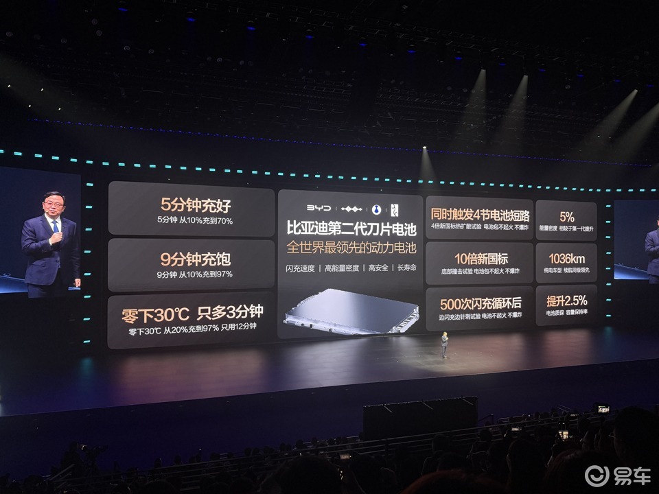 王传福特别强调,去年发布的兆瓦闪充是“量变”,将峰值功率推向新高度;而 今天的闪充技术是“质变”,实现了从头到尾全程快,真正把用户的充电痛点完美解决 。不仅如此,第二代刀片电池在能量密度上也实现了逆势提升,相较第一代提高了5%,这使得搭载该电池的车型续航里程轻松突破千公里。例如,腾势z9GT的CLTC续航达到了1036公里,仰望U7也达到了1006公里 。