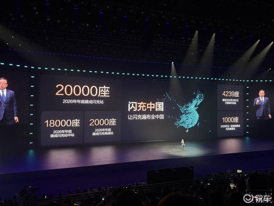 除了产品技术本身,比亚迪的补能生态也同步迈入快车道。王传福在发布会上正式启动了“闪充中国”战略。比亚迪计划到2026年年底,在全国范围内建设落成2万个闪充站。这一网络包含1.8万座与第三方合作的“闪充站中站”以及2000座覆盖高速公路的“闪充高速站”。根据规划,今年“五一”前,首批1000座高速闪充站将建成投用,届时高速路上平均每100多公里就有一座比亚迪闪充站 。
