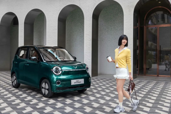先来说外观。宏光miniEV第五代新车采用了全新的“甜趣方糖”设计语言,看起来像一颗甜甜的糖果,“笑颜”前脸搭配“向日葵酒窝”极具亲和力,贯穿式镀铬亮条和星环LED灯组让整个车头显得精致又精神。车身配色也挺有意思,绿悠悠、白绒绒、灰萌萌三款复古珠光色,八层涂色工艺让漆面光泽感十足,也更扛得住剐蹭,颜值不低。