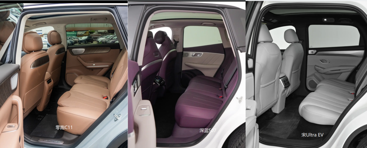 虽然零跑C11的车身长度要比宋Ultra EV短一些,但是轴距反而更长一些,还带座椅按摩、腿托等配置,长途出行会更舒适,算是一个加分项。