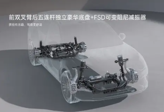 底盘采用前双叉臂后五连杆悬架,其中悬置、转向机壳体均为铝合金材质,轻量化设计再加上近300组减振器方案和8000公里里程调试,让这款十几万的车实际开起来有种类似20万级中高端汽车的高级感。