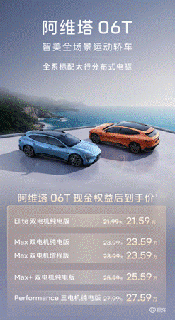 针对阿维塔06T上市,官方也给出了限时购车政策。只要在2026年5月31日(含)前下单,就能拿到最高价值6.9万元的权益包,2026年5月31日(含)前下定可享至高价值6.9万元限时购车权益,包括:4000元限时现金权益、10000元限时老车主升级礼遇、20000元主副驾双零重力座椅免费升级、3000元外饰色限时折扣、12000元个性化选配基金、20000元ads高阶功能包等额抵扣券、6000元ADS Pro增强版高阶功能包等额抵扣券、贷5年首2年0息限时金融购车礼遇、首任车主终身三电质保。另外,2026年5月10日(含)前下定,额外可享5000元保险补贴权益。